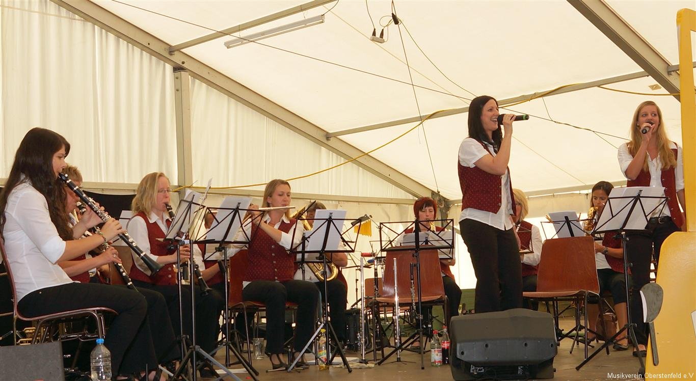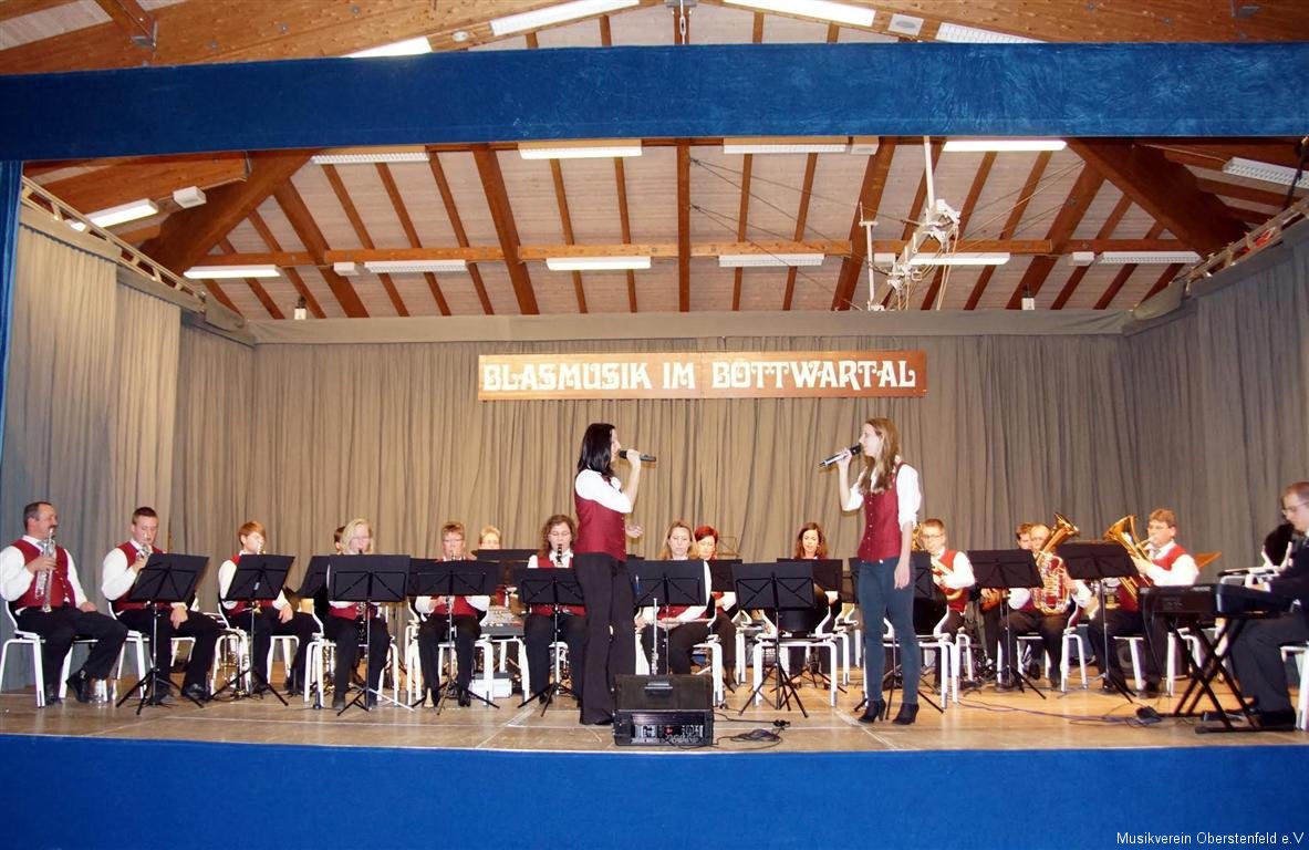 Marcus Esslinger führte gekonnt durch das Programm des Abends, er kündigte als zweites Orchester den Musikverein Oberstenfeld unter seinem Dirigenten Benjamin Reiner an. Auch diese Musiker konnten das Publikum mit Ihrer Musik zu langanhaltendem Applaus hinreißen. Vor allem sorgte das Gesangs Duo Tina Albert und Lisa Polosek mit zwei Titeln für beste Stimmung in der gut besetzten Halle.