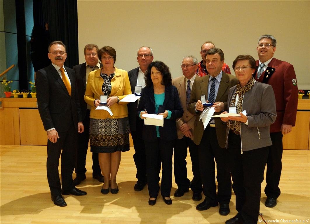 Zum Abschluss bat Michael Feider die vier Dirigenten nebst Marcus Esslinger vor die Bühne, um ihnen mit einem Präsent für die hervorragenden Musikbeiträge und die launig gehaltene Moderation zu danken. Allen Mitgliedern und Freunden, sowie den Einwohnern der Gemeinde, wünscht der Musikverein ein besinnliches Weihnachtsfest und ein gutes neues Jahr 2014.